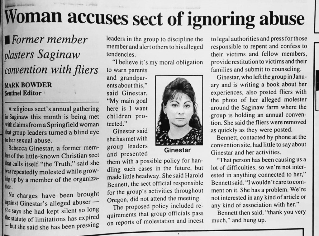 Leadership addressed included Harold Bennett himself, Dean Bruer in Montana (recently exposed for numerous incidents of sexual abuse of children and adults), Mark Huddle (recently removed from the work due to numerous allegations of child sexual abuse), and Dale Shultz (currently facing legal ramifications for alleged mishandling of child sexual abuse allegations).