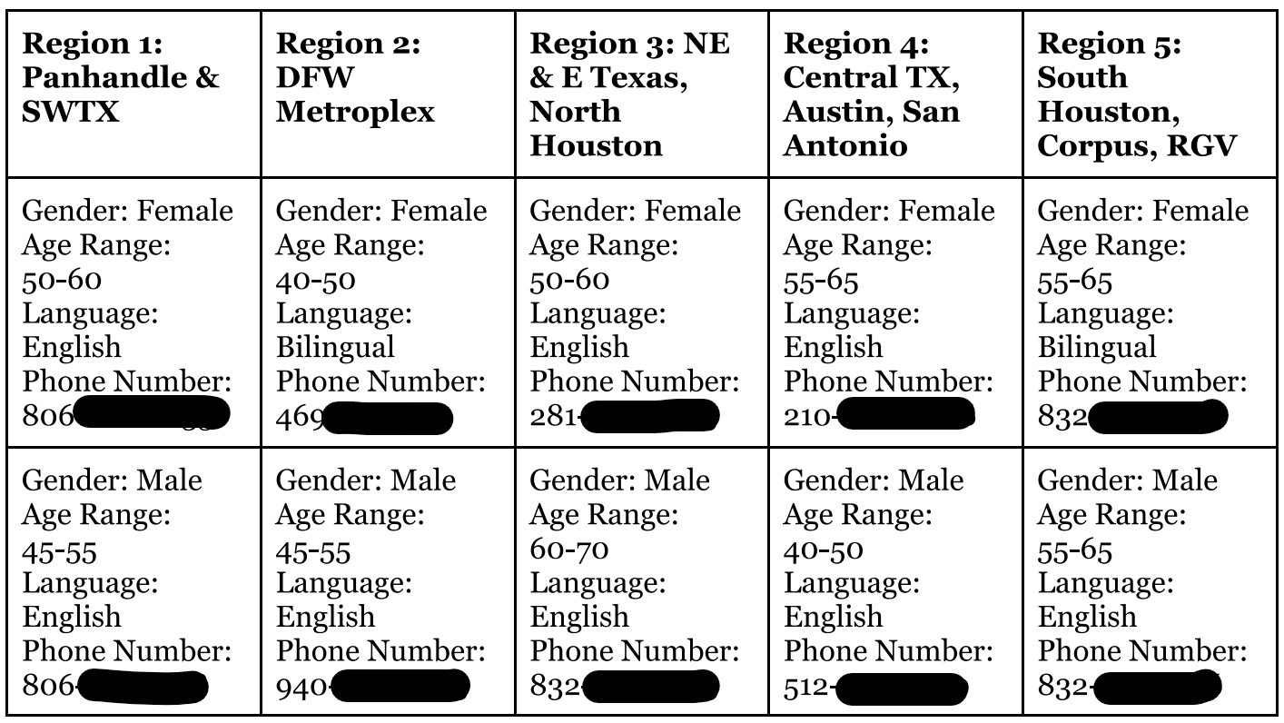 The deacons have been chosen based on recommendations made by our friends and workers. In order to protect the privacy of those who are filling the role we will be listing the deacons by their gender, age range, and language spoken. We are assigning them Google numbers that will be forwarded to their cell phones. By indicating which deacons are bilingual (Spanish and English) it will allow for someone to reach outside of the deacons in their region if they need to communicate in Spanish.